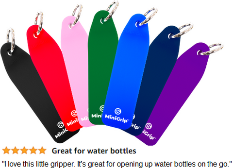 MiniGrip™ has a patent-pending dual surface design with a high friction gripping surface to help open all types of twist-tops and lids while providing a comfortable surface to support dry or sweaty hands.